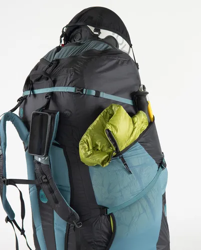 Alles hat seinen Platz. Diverses Zubehör kann im NOVA FERUS praktisch verstaut werden. Auf einem der anatomisch geschnittenen Schultertrageriemen kann auf der Klett-Fläche ein Smartphone oder GPS-Tracker fixiert werden. Im Deckelfach befindet sich ein kleiner Karabiner zur Sicherung des Schlüssels. Zusätzlich gibt es im Nackenbereich ein kleines Wertsachenfach mit Reißverschluss. Im Hauptfach kann man innen mit einer Befestigungslasche ein Trinksystem einhängen und den Schlauch durch den entsprechenden Auslass hinausführen. Für Trekking-Stöcke gibt es eine eigene Außentasche. Findet der Helm im Hauptfach keinen Platz, kann er mittels Helmnetz an der Oberseite befestigt werden. Der FERUS 105 kommt mit zwei Netzaußentaschen auf der Hüftflosse für Kleinigkeiten wie Riegel, Geld, Sonnencreme oder Reserveakkus, der FERUS 80 mit einer.